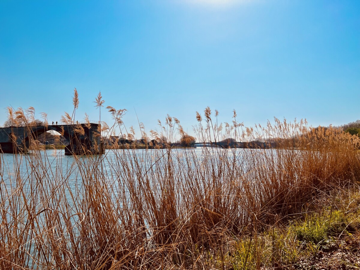 Wir bummeln nochmal durch die Stadt, heute ist T‑Shirt-Wetter. Wieder auf dem Campingplatz bekommt Moritz eine schöne Runde am Wasser entlang.