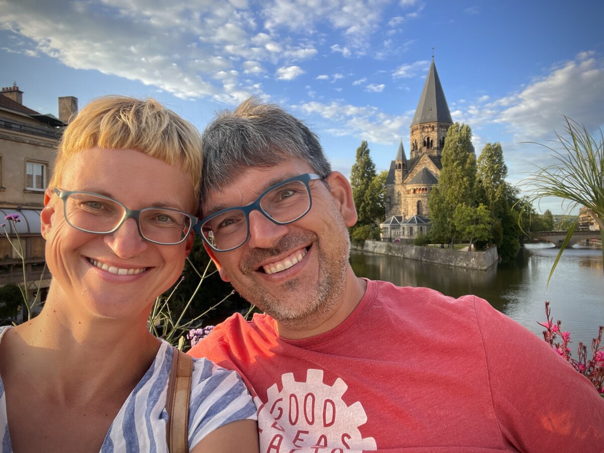 Gestern Abend sind wir dann noch in Metz angekommen, wo wir im September zuletzt auf der Rückreise von unserer „Christo Paris“-Tour waren. Diesmal haben wir uns nicht für den Stellplatz, sondern den „luxuriöseren“ Campingplatz entschieden. Mit und ohne Moritz waren wir mehrmals entlang der Mosel und in der Stadt unterwegs. An Metz gefallen uns das durchaus alternative Publikum, die Restaurantvielfalt und die schöne Mischung aus „Alt & Fluß“. Leider sieht man seit unserem letzten Besuch noch deutlich mehr geschlossene Geschäfte. Metz bildet den Abschluss unserer dreimonatigen Tour. Wir haben unglaublich viel gesehen und erlebt!