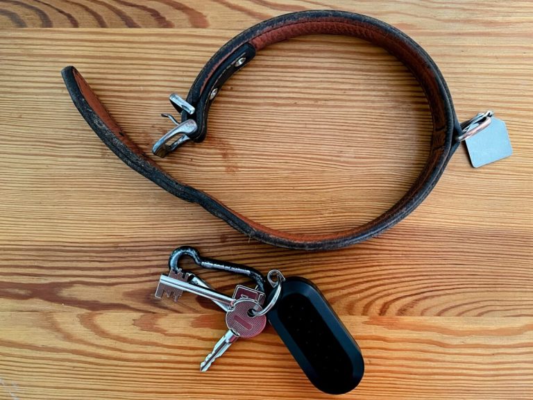 Moritz fand es spitze: Endlich wieder sein Garten, endlich kam das blöde Halsband ab. Wenn wir unterwegs sind, bekommt er dieses zusätzlich an – auf dem Anhänger steht meine Mobilnummer, für den Fall der Fälle.