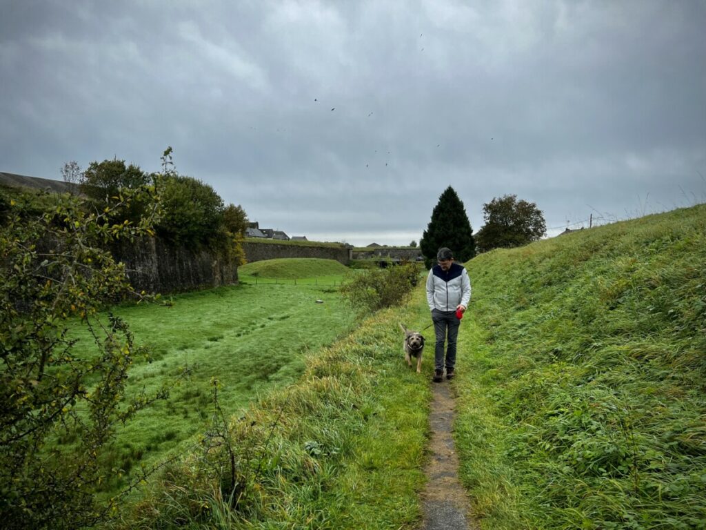 Am Dienstag geht es 120 km wunderschöne und einsame Straßen an der Maas entlang über die Grenze nach Belgien. Im Vergleich dazu ist die Mosel überlaufen und hier ist es mindestens genauso schön. Wir machen kurze Stopps in Givet (Frankreich) und Dinant (Belgien), meist aber nur für ein paar Fotos, weil es ununterbrochen regnet. Noch eine schöne Hunderunde in fantastischer Natur in der Nähe von Rochefort, hier sind wir sicher nicht zum letzten Mal.