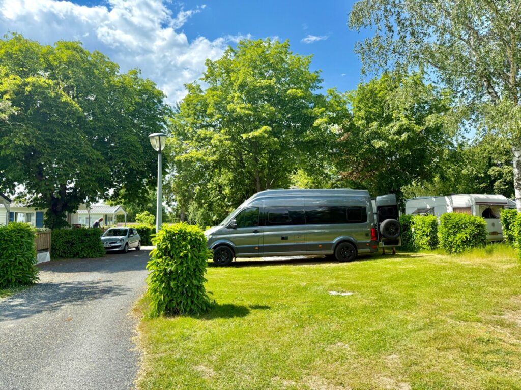 Bei unserer Ankunft in Évaux-les-Bains wissen wir dann, warum die App den ganzen Tag angezeigt hat, dass noch alle Plätze frei sind. Es sind schwülheiße 29 Grad und der geschotterte Platz hat keinerlei Schatten. Zum Glück habe ich eine Alternative gefunden. Der städtische Campingplatz entpuppt sich als entspannt, gepflegt und schattig. Nur die sanitären Anlagen könnten mal wieder ein Update vertragen, dafür ist der Preis mit 33 EUR für 2 Nächte für französische Verhältnisse unschlagbar günstig.