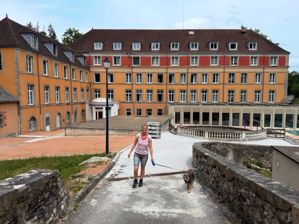 Nun sind wieder 48 Stunden Entspannung für alle drei angesagt. Das Örtchen mit rund 1.300 Einwohnern muss einst eine Perle unter den Kurorten gewesen sein. Es wurde als Badeort von den Römern gegründet. Allerdings sind 3 von 5 Häusern zu verkaufen, der ehemaligen Bahnhof ist stillgelegt und es gibt viele Lost Places. Immerhin entdecken wir den ersten Baguette-Automaten der Reise, den muss ich gleich ausprobieren. Am Sonntag machen wir eine schöne Wanderung, Moritz hat aber mittlerweile ganz schön Probleme bei Anstiegen. Wir werden also auf ebene Touren umsteigen.