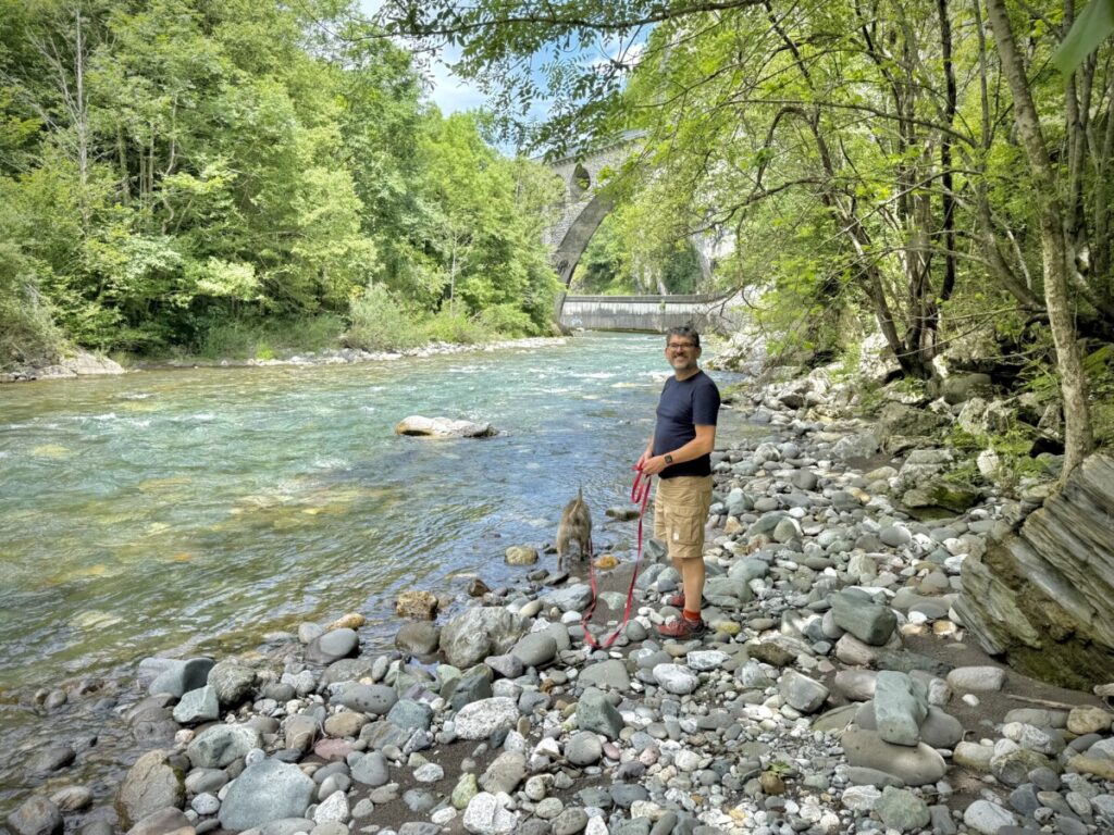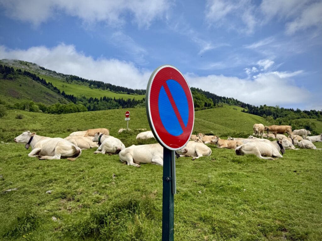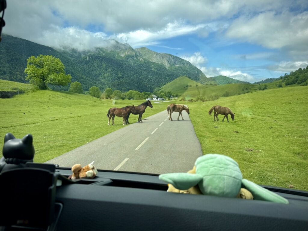 Aber der Reihe nach: Nach dem Frühstück ging es in Lourdes los, noch ein Tankstopp am nächsten Supermarkt und dann rauf auf die Passstraße. Landschaft pur. Atemberaubend. Eine kleine Straße noch auf der französischen Seite mit sehr wenig Verkehr, dafür aber freilaufenden Kühen und Pferden, hat uns schwer beeindruckt.