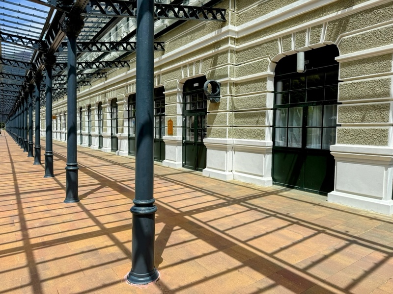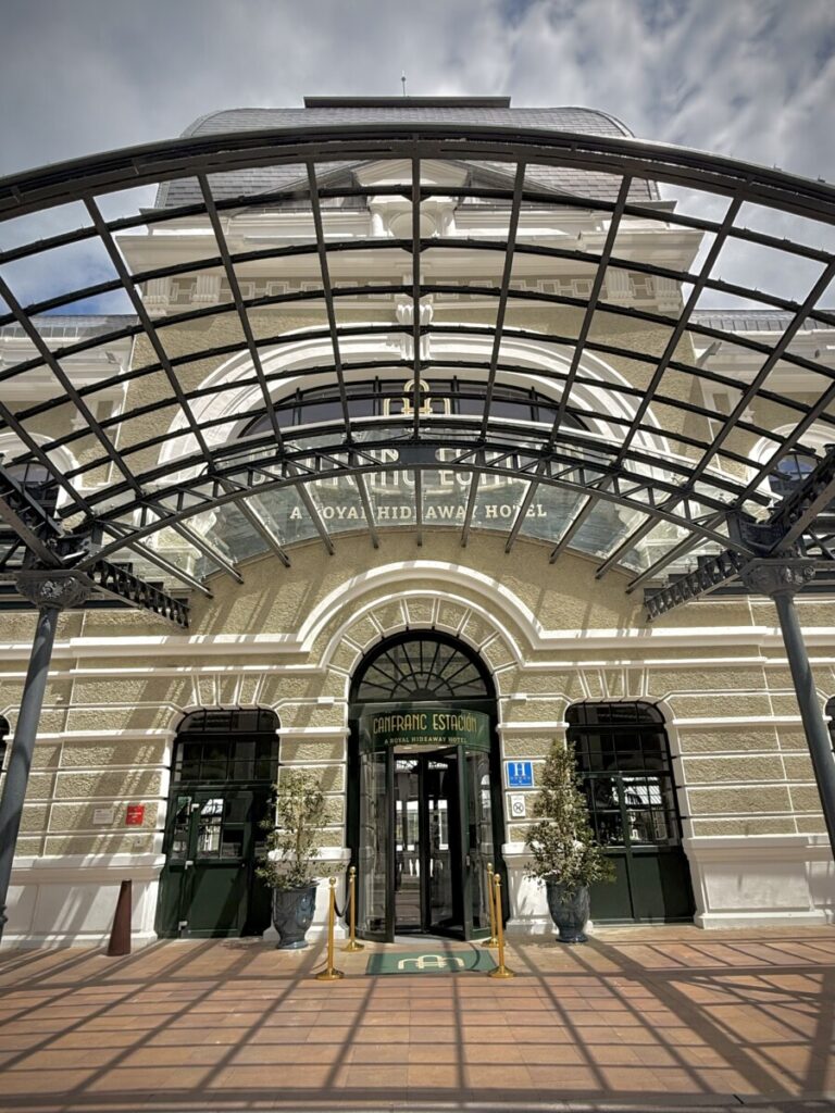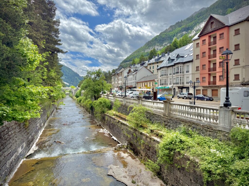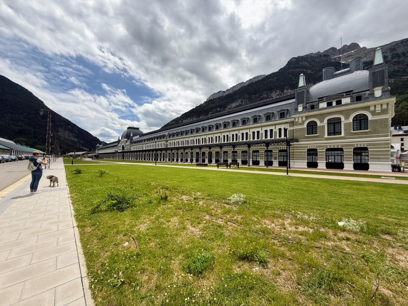 In einer anderen Zeit führte durch das gleiche Tal eine Zugstrecke. Für die Güter- und Personenabfertigung wurde dafür auf der spanischen Seite in Canfranc 1928 ein riesiger Bahnhof errichtet. Das Hauptgebäude des spanisch-französisches Gemeinschaftsprojekts ist beeindruckende 241m lang und heute ein 5‑Sterne-Luxushotel.