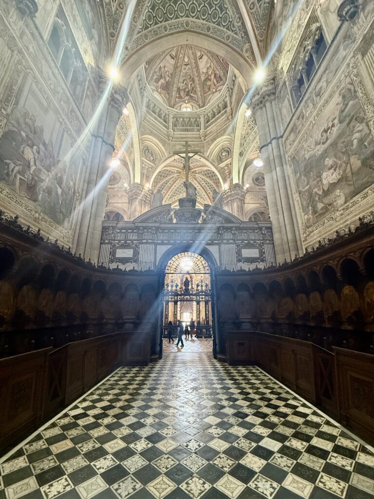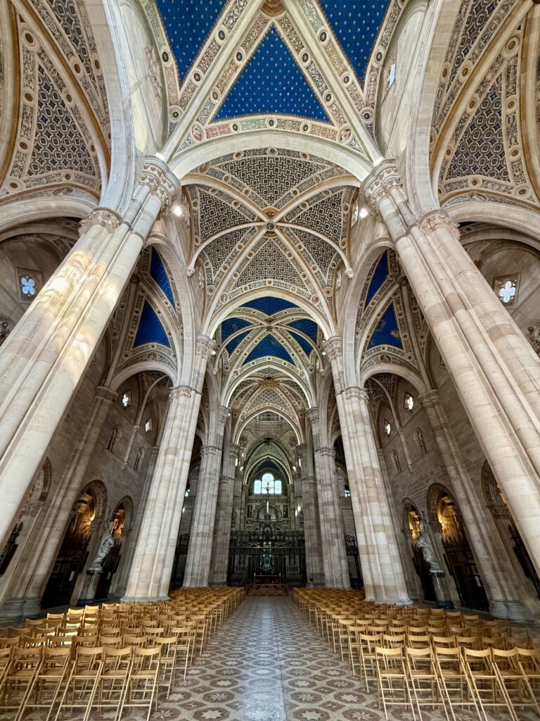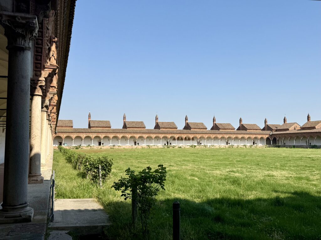 Unser Tagesziel ist das Kloster Certosa di Pavia, weil beeindruckend und Stellplatz für Wohnmobile direkt daneben. Es handelt sich um eine riesige Klosteranlage im gotischen und Renaissance-Stil mit Kirche, Kreuzgang und einem nochmals 2 Fußballfelder großen Areal von, als einzelne Häuser gebauten, Mönchszellen. Weil es zu heiß ist, geht Micha allein ins Kloster und Anja ruht sich mit Moritz aus. Morgen haben wir einen langen Fahrtag vor uns, da können wir noch etwas Ruhe gebrauchen.